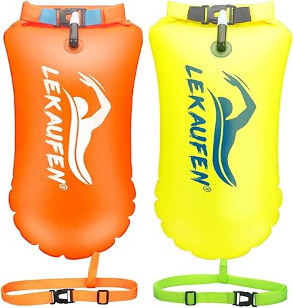 Swim Buoy for Open Water 2 Pack, 20L Swim Safety Float Waterproof Dry Bag for Swimmers Triathletes Kayakers Snorkelers, Swimming Pull Buoy for Safer Swim Training (Yellow & Orange)