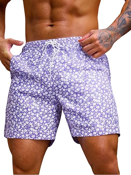 Verdusa Men's Drawstring Waist Swimwear Beach Shorts Swim Trunks with Pockets