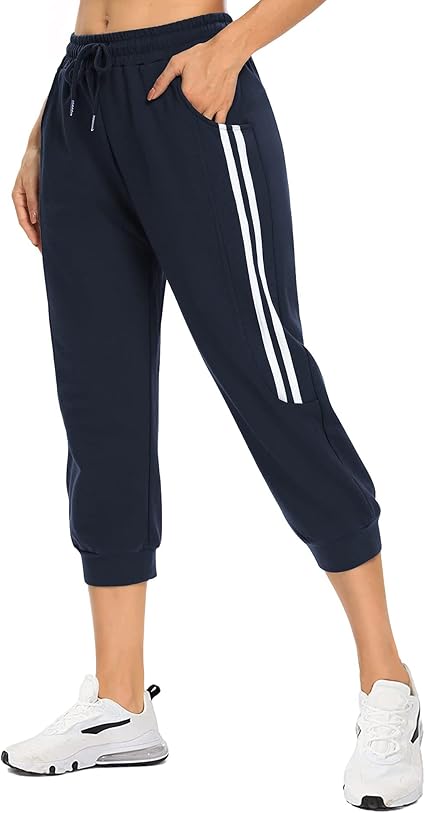 KaiDi Women's Capri Sweatpants - Casual Capri Pants with Pockets, Drawstring Workout Sweatpants for Yoga