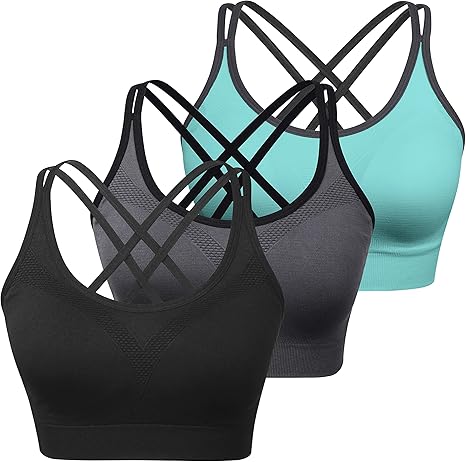 WOYYHO Cross Back Sports Bra for Women Padded Strappy Yoga Bra Medium Support Workout Bra for Athletic Gym Fitness 3 Pack