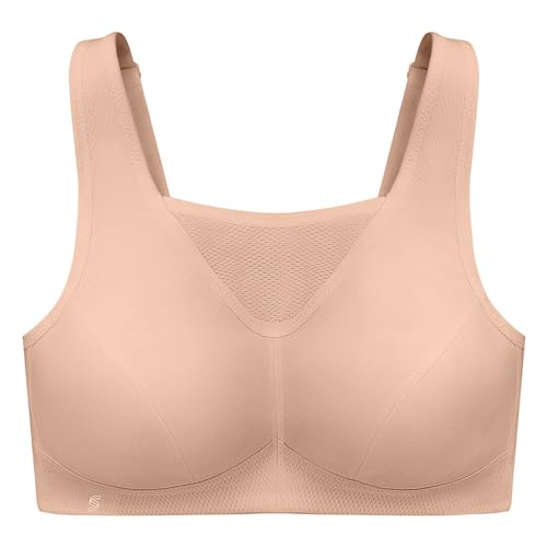 Full Figure Plus Size No-Bounce Camisole Sports Bra Wirefree #1066 Café