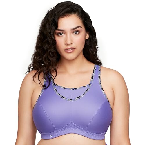 Full Figure Plus Size No-Bounce Camisole Sports Bra Wirefree #1066 Purple