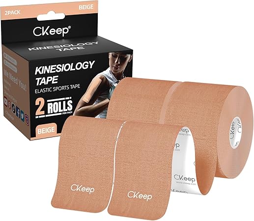 CKeep Kinesiology Tape, Uncut 2 Rolls, Original Cotton Elastic Premium Athletic Tape, Latex Free Hypoallergenic, 2inch x 16ft, Begie