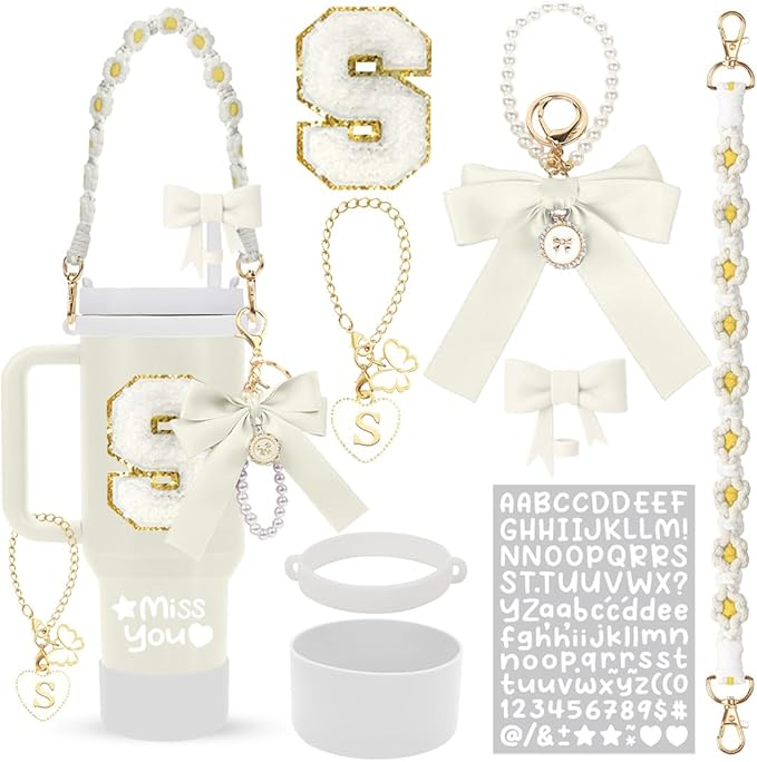 Stanley Cup Accessories Set, 8Pcs Cup Accessories Including Straw Topper, Silicone Stanley Boot, Cup Charm, Stickers for Water Bottle and Other Accessories