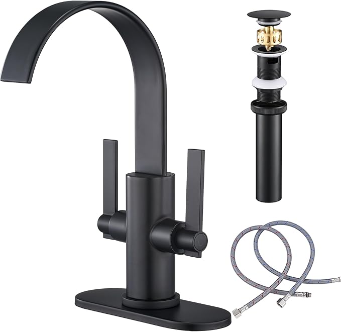 Matte Black Bathroom Faucet¥_ëWaterfall Bathroom Faucet 1 Hole or 3 Hole¥_ë2 Handles Faucet for Bathroom Sink¥_ëRv Bathroom Sink Faucet with Metal Pop Up Drain¥_ë360ŒÁ Rotating Vanity Faucet with Deck Plate