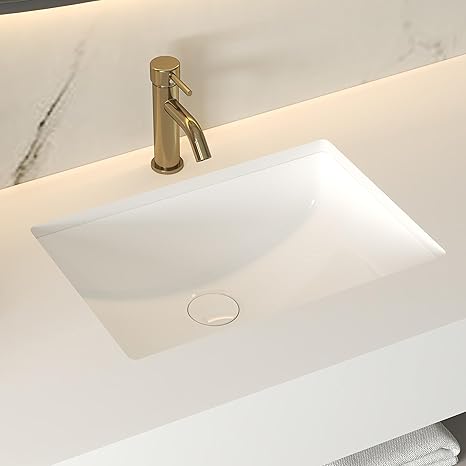 20 x 14 Undermount Bathroom Sink Rectangle, WHALEKING Under Mount White Porcelain Ceramic Sink Bowls for Bathroom Vanity, Rectangular Lavatory Basin with Overflow, Interior Bowl Size 18-7/8 x 12-7/8