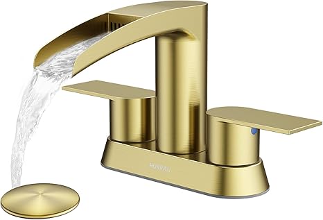 Bathroom Sink Faucet for 3 Hole, Hurran 4 Inch Bathroom Faucets with Pop-up Drain, Stainless Steel 2-Handle Waterfall Faucet for Bathroom Sink, Brushed Gold