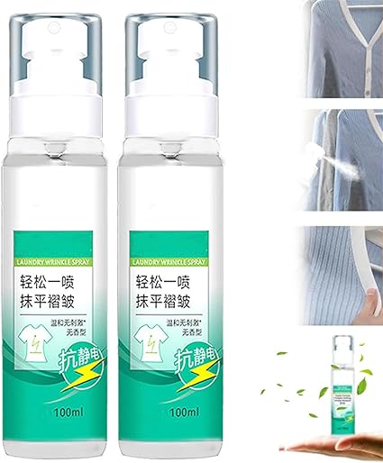 Gentle Formula Portable Clothing Wrinkle Releaser Spray, 100ml Anti Static Spray for Clothes, Anti Static Spray for Clothes, Lothes Refresher Spray Travel, Anti-Static and Deodorizing (2PCS)