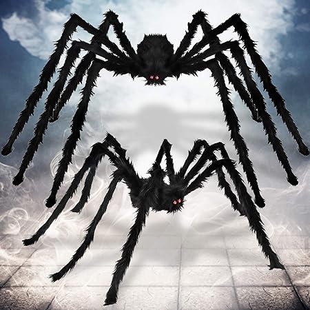 2 Pack Halloween Decorations Spiders, Hairy Giant Spiders for Scary Halloween Decor Outdoor Wall Yard House, (6.5 FT + 5 FT)