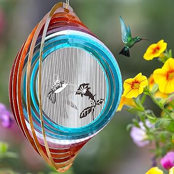 3D Animations Hummingbird Wind Spinner for Yard and Garden, 12In Metal Wind Spinners Hummingbird Gift for Women Mom Grandma Wife, Outdoor Garden Decor Hanging Kinetic Yard Art Wind Sculpture