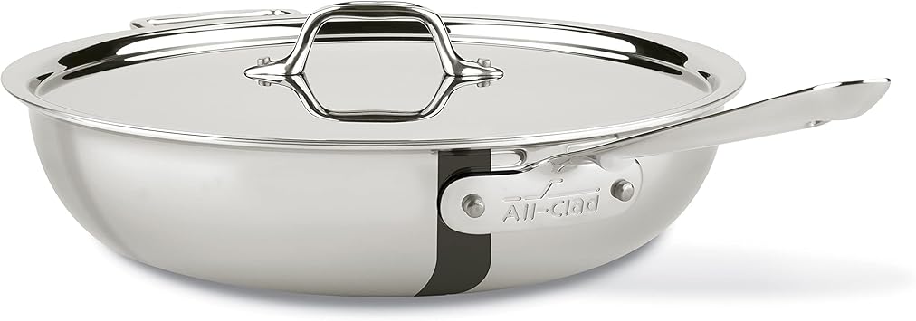All-Clad D3 3-Ply Stainless Steel Large Weeknight Fry Pan with Lid 4 Quart, Induction, Oven Broiler Safe 600F, Fast and Even Heat, Pots and Pans, Cooking Frying Pan, Skillet, Kitchen, Cookware, Silver