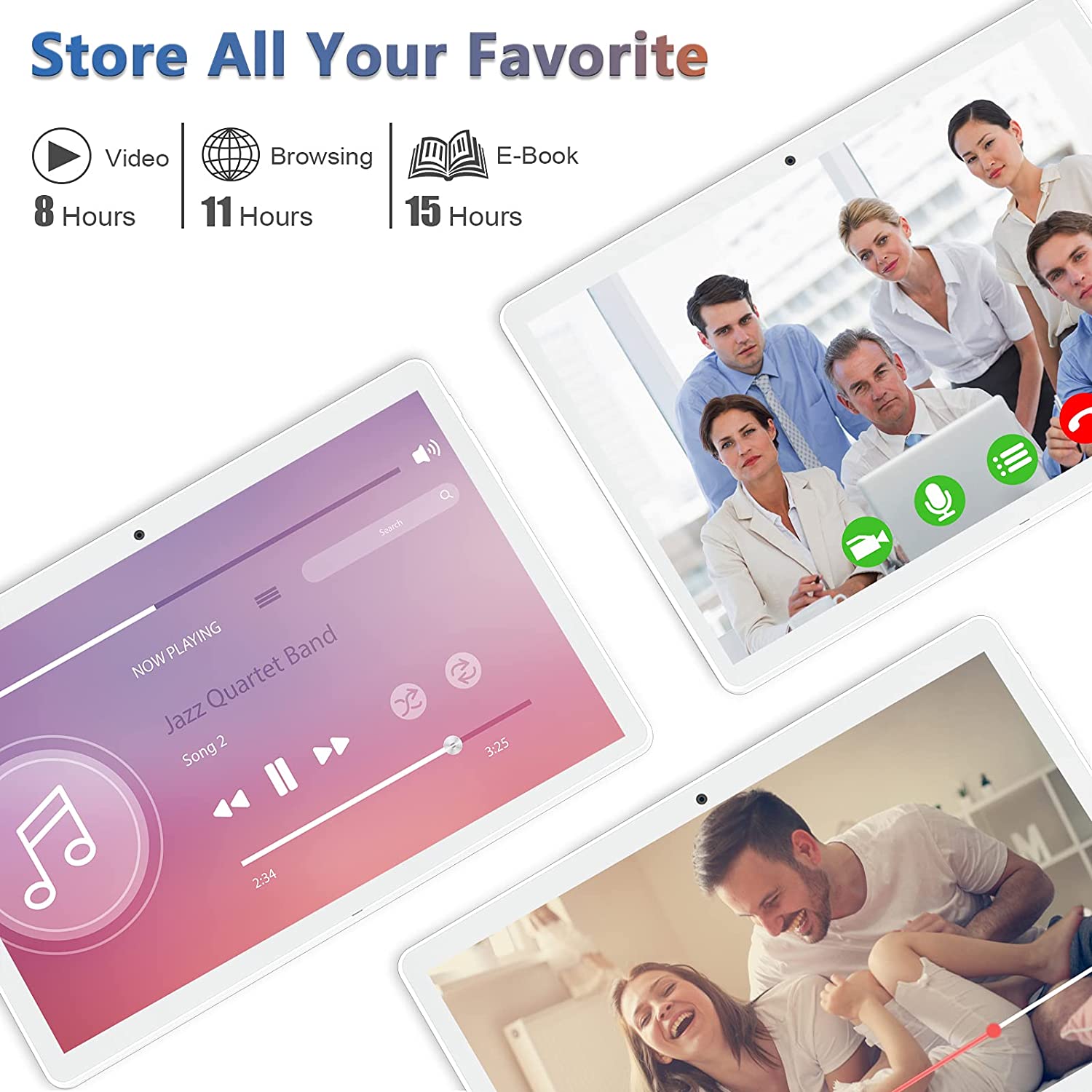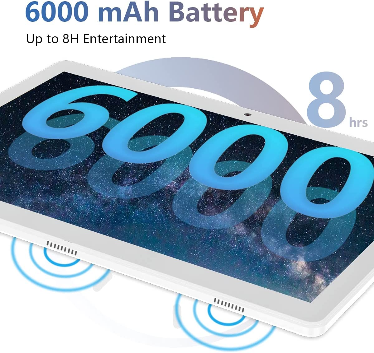 • 【LONG LASTING BATTERY】Equipped with a long-lasting and environmentally compliant 6000 mAh battery, this 10-inch tablet will effortlessly provide you with up to 8 hours of support for reading, browsing, watching movies and playing games. The long-lasting battery life and lightweight design allow you to enjoy your tablet anywhere, anytime.