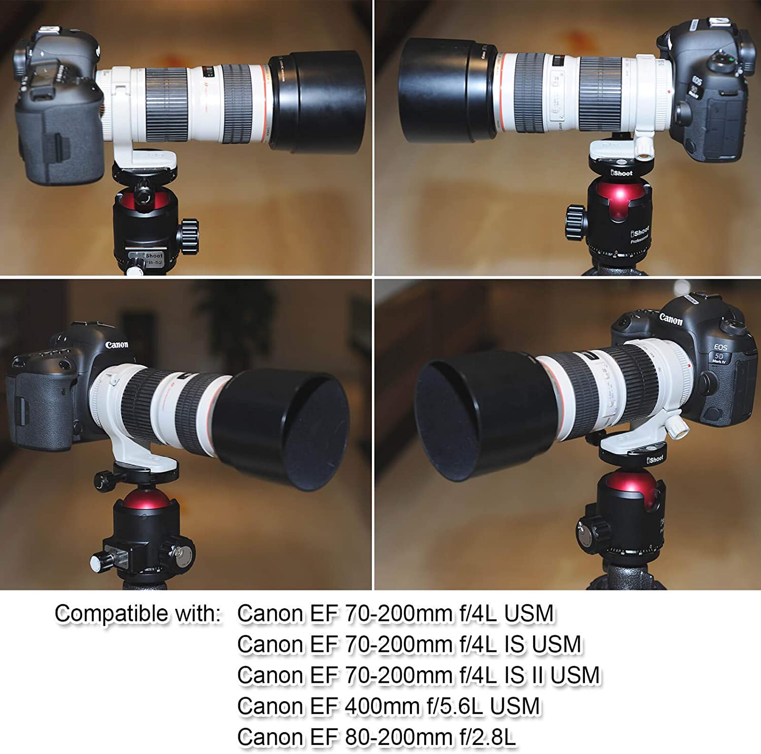 iShoot Improved Metal Lens Collar Tripod Mount Ring, for Canon EF 70-200mm f/4L (is/is II) USM, Canon EF 400mm f/5.6 L USM, Canon EF 80-200mm f/2.8L Lens, Built-in ARCA-Swiss Fit Quick Release Plate