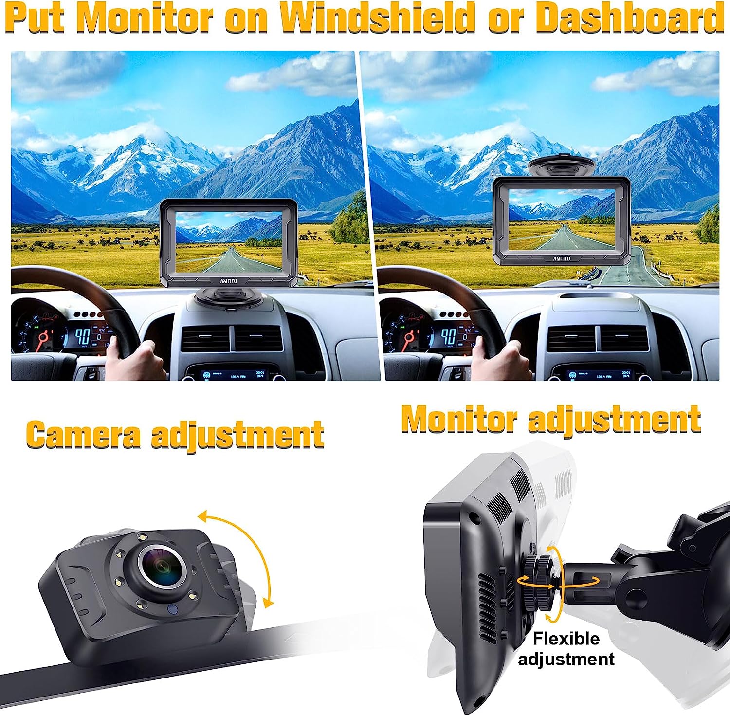 • 🚙 Muti-Function: The car backup camera with monitor is easy switch between rear and front views and adjust brightness, contrast, saturation, tint, and language for the perfect viewing experience.