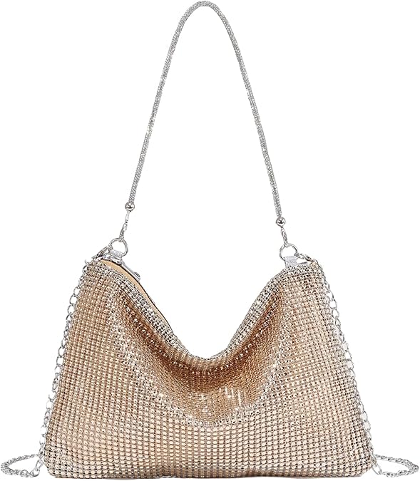 Verdusa Women's Shiny Rhinestone Evening Handbag Hobo Bag Clutch Purse