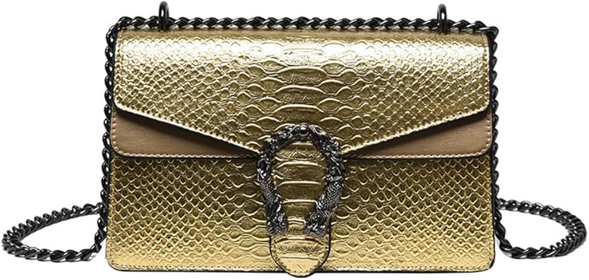 Women Small Satchel Bag Classic Snake Printed PU Leather Shoulder Purse Crossbody Bag with Chain