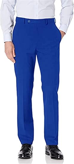 Wehilion Suit Pants for Men Expandable-Waist Flat Front Regular Fit Mens Suit Pants Royal Blue-XXXL