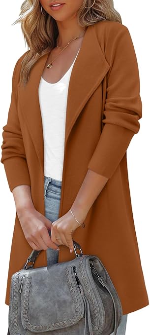 ZOLUCKY Womens 2024 Fall Open Front Knit Cardigan Long Sleeve Lapel Coat Casual Solid Classy Sweater Jacket S-3XL