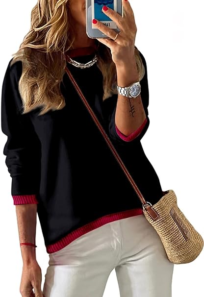 Dokotoo Sweaters for Women Casual Long Sleeve Crewneck Striped Color Block Shirts High Low Pullover Sweater Tops