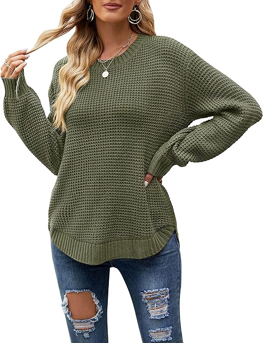MEROKEETY Women's 2024 Fall Casual Fall Waffle Knit Sweater Long Balloon Sleeve Loose Pullover Jumper