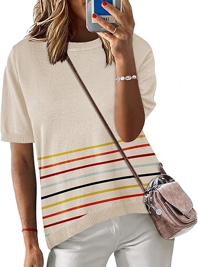 Zeagoo Womens Sweaters Short Sleeve Top Casual Crew Neck Knit Trendy Pullover Sweater Tops
