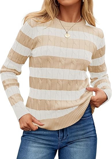 ZESICA Women's Sweaters Fall Winter Casual Striped Long Sleeve Crew Neck Cable Knit Loose Chunky Pullover Sweater