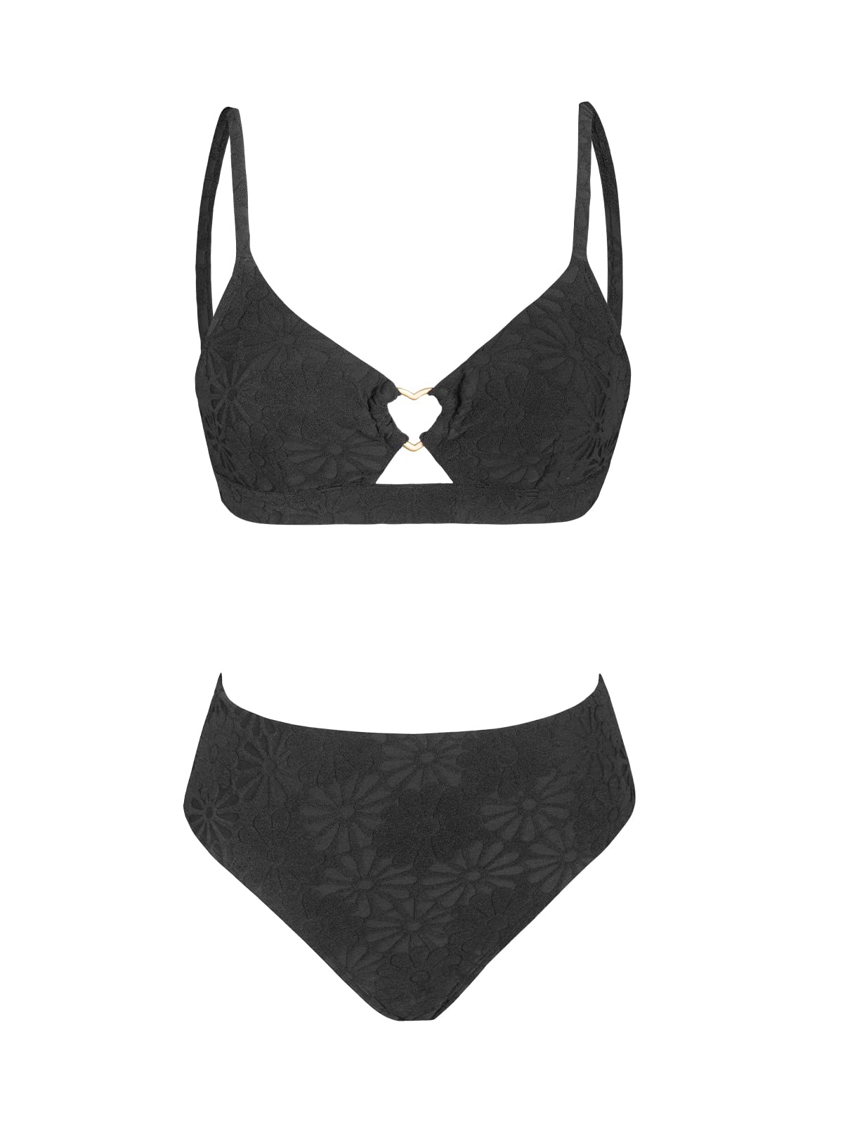CUPSHE Bikini Set for Women Swimsuits Mid Waisted Cutout Spaghetti Straps Back Hook Heart Ring, M Black