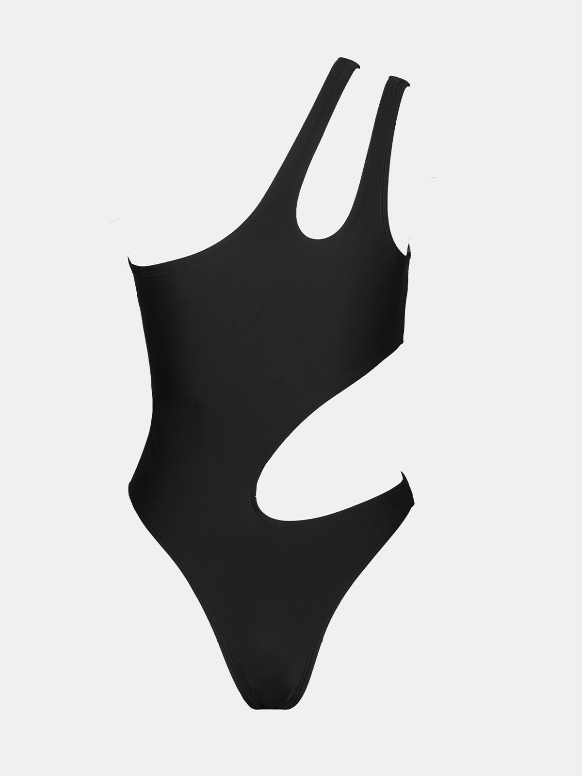 CUPSHE One Piece Swimsuit for Women One Shoulder Bathing Suits Cutout High Cut Swimwear M, Black
