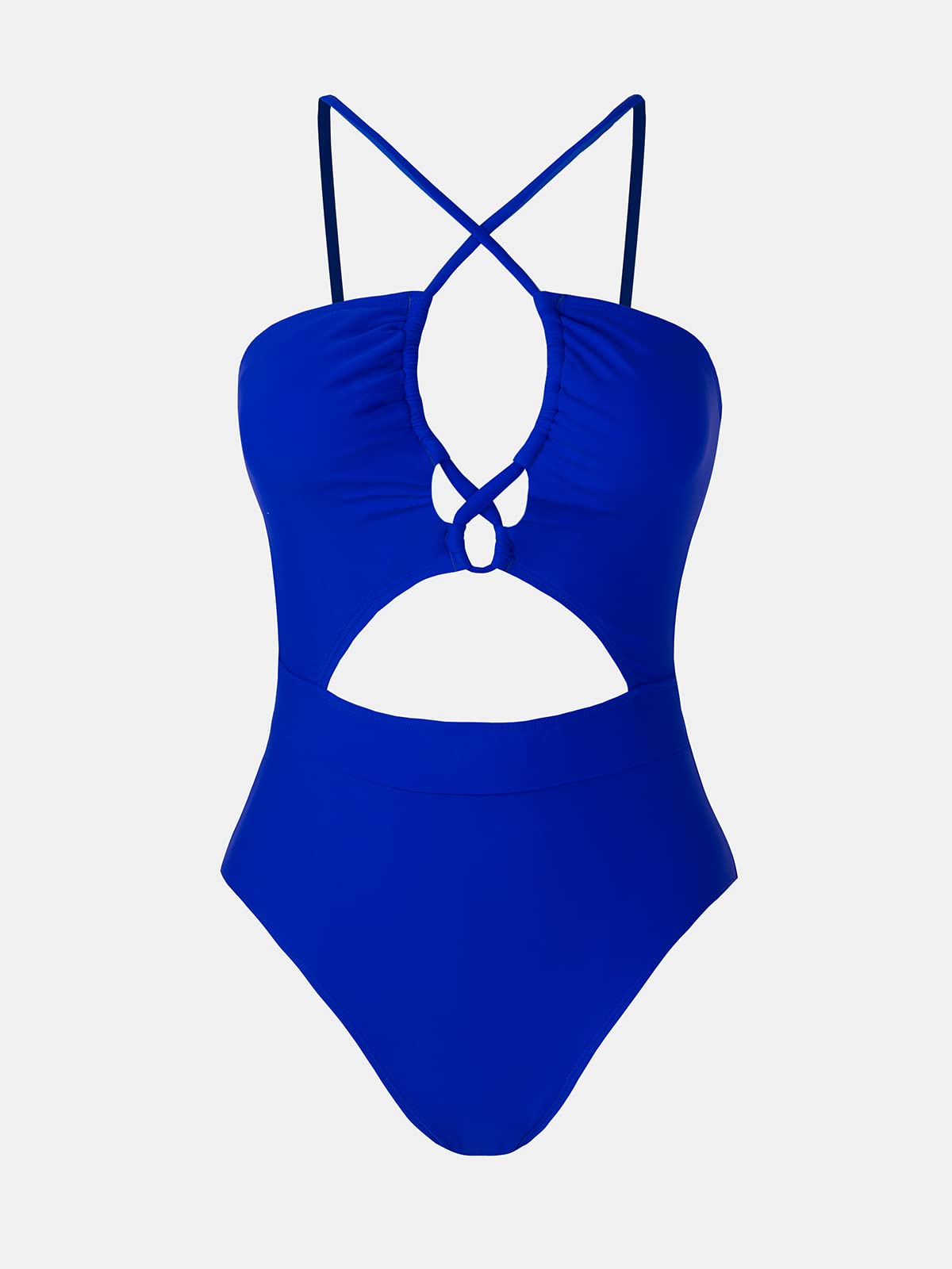 CUPSHE Women One Piece Swimsuit Deep V Neck Cutout Criss Cross Bathing Suit L Navy Blue