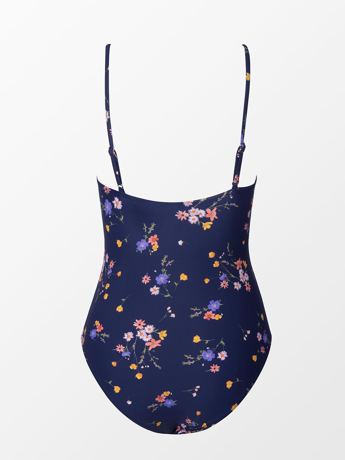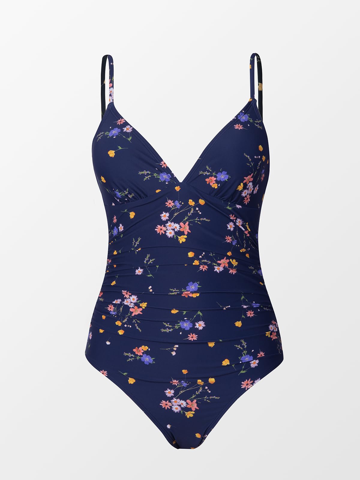 CUPSHE Women One Piece Swimsuit Deep V Neck Tummy Control Low Back L Navy Floral