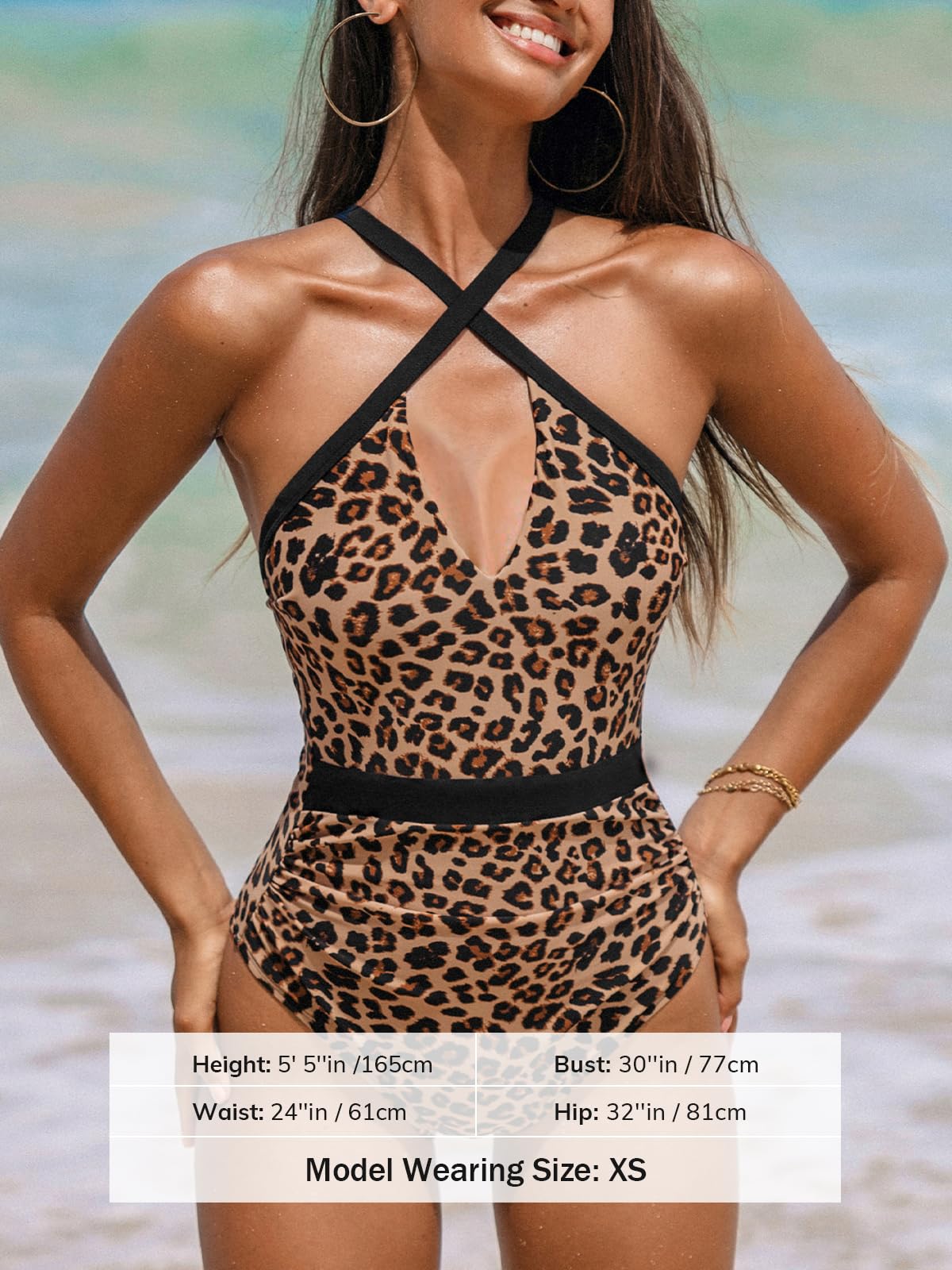 • Design: This Leopard One Piece Swimsuit Shows a High Neck and Cutout Design for Glamour. Expertly Crafted Ruching Creates a Flattering Tummy Control Effect, While the Crisscross Back Tie Ensures a Perfect Fit. Cup: Removable Soft Cups.