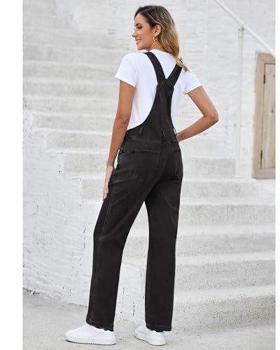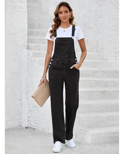 Vetinee Overalls Women Spring Jumpsuits for Women 2024 Overalls for Women Loose Fit Black Denim Jumpsuit for Women Travel Outfits for Women Black Jean Jumpsuit Balck X-Large Fits Size 16 / Size 18