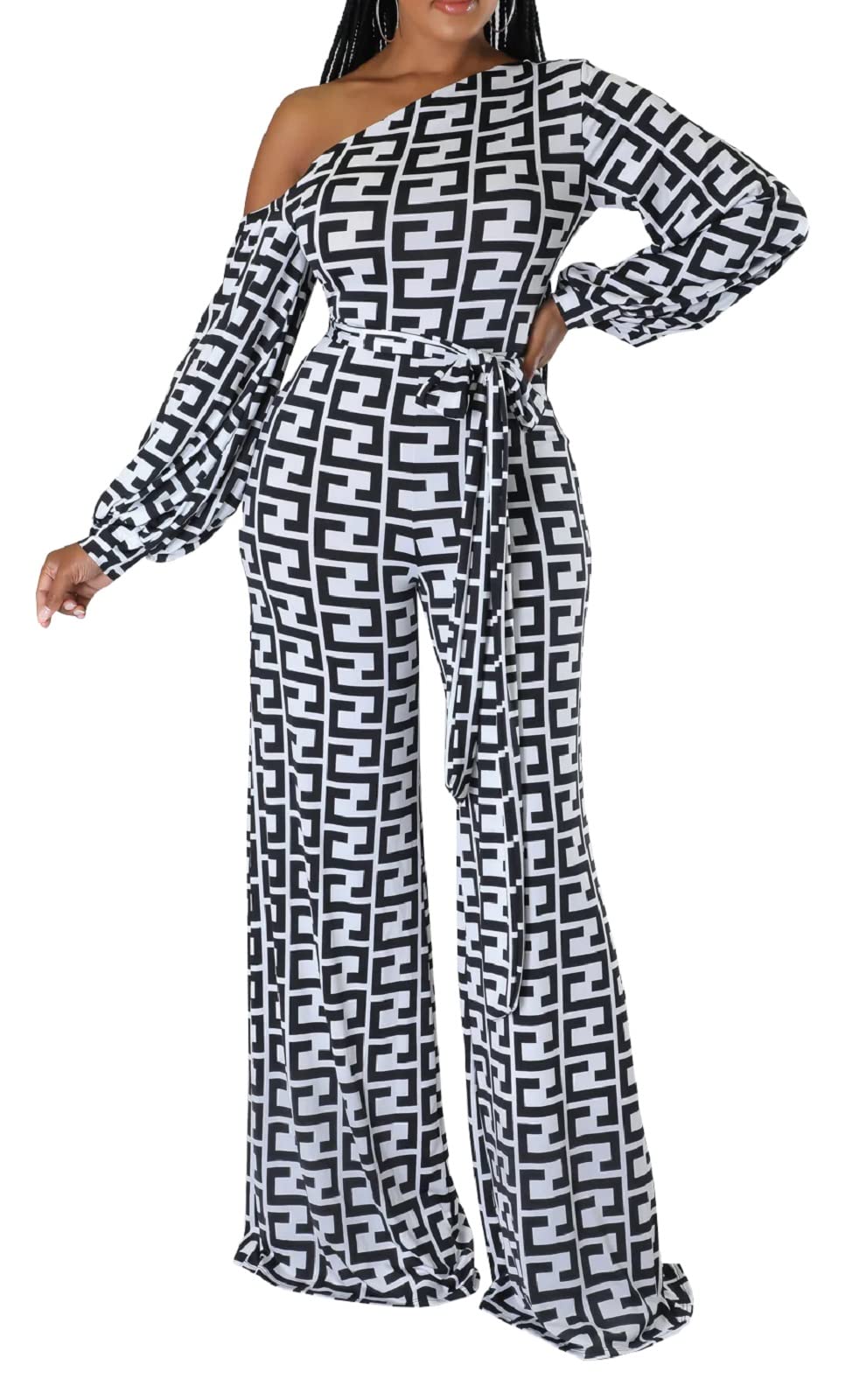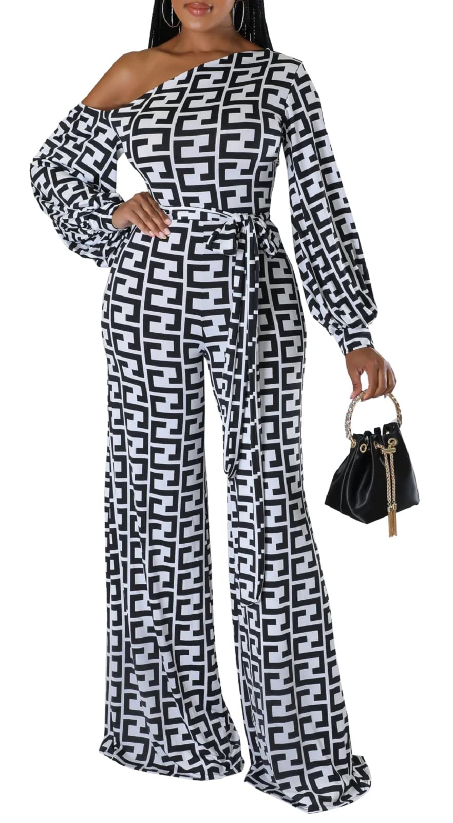 • Feature:slanted shoulder sleeves,long sleeve,wide leg long pants,irregular print would not 100% same as the pic.