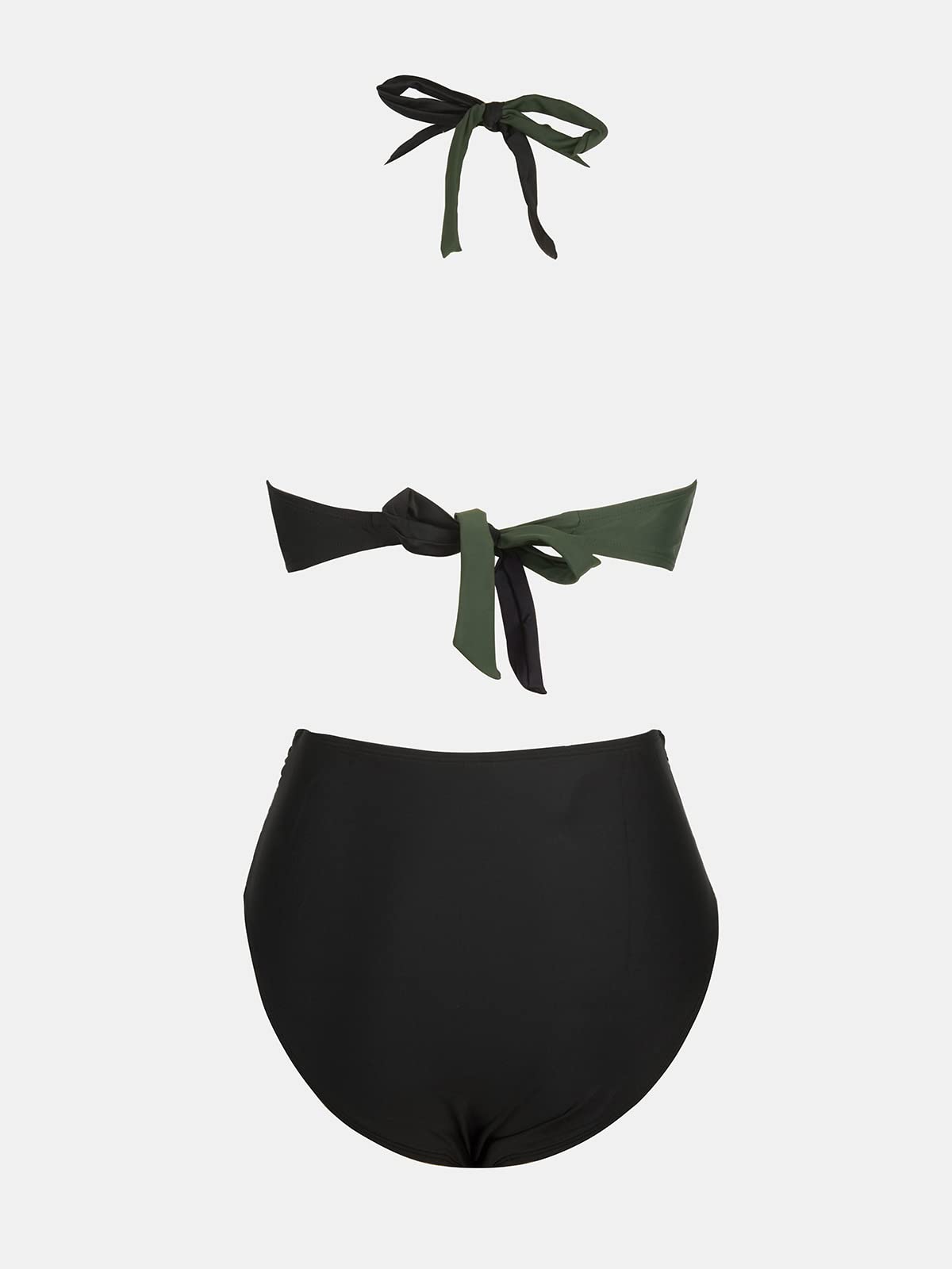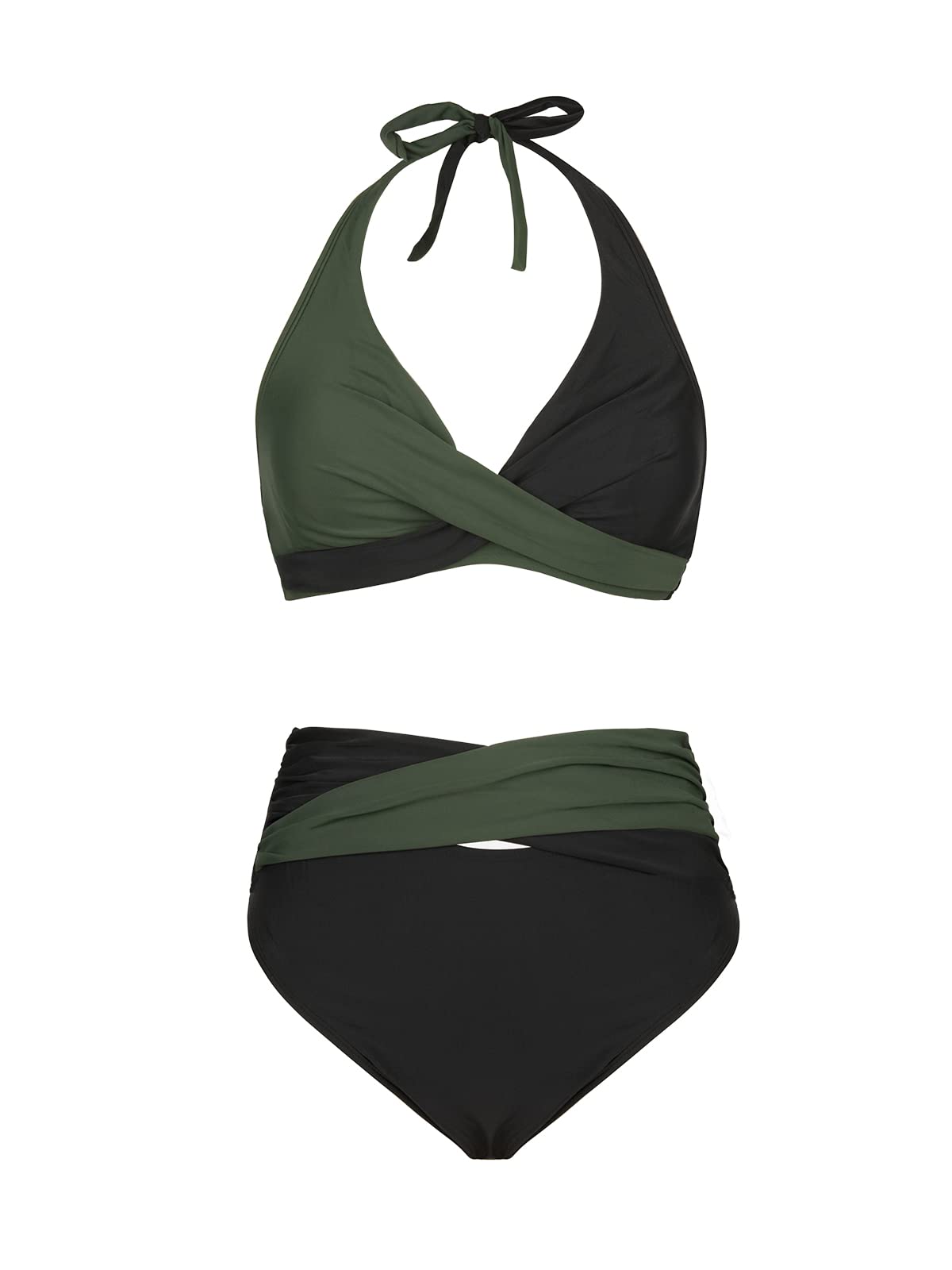 CUPSHE Bikini Set for Women Two Piece Swimsuit High Waisted Wrapped Halter Back Self Tie Color Block L