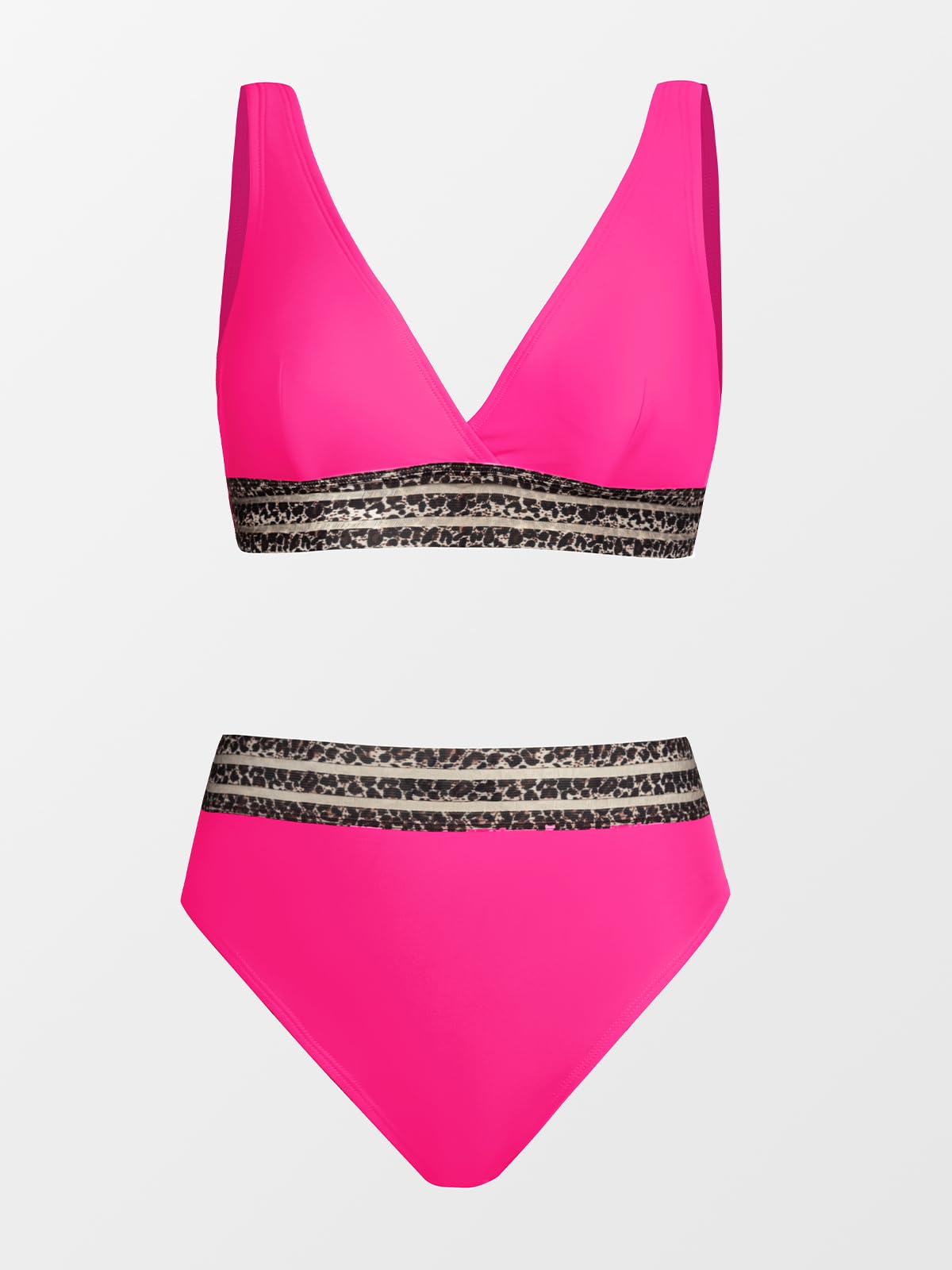 • Design: This bikini sets is unique, with a v neck that shows off your collarbone and a leopard print patchwork. The back hook provides support and comfort. High waisted bottom design trims the waistline and shows the perfect shape.