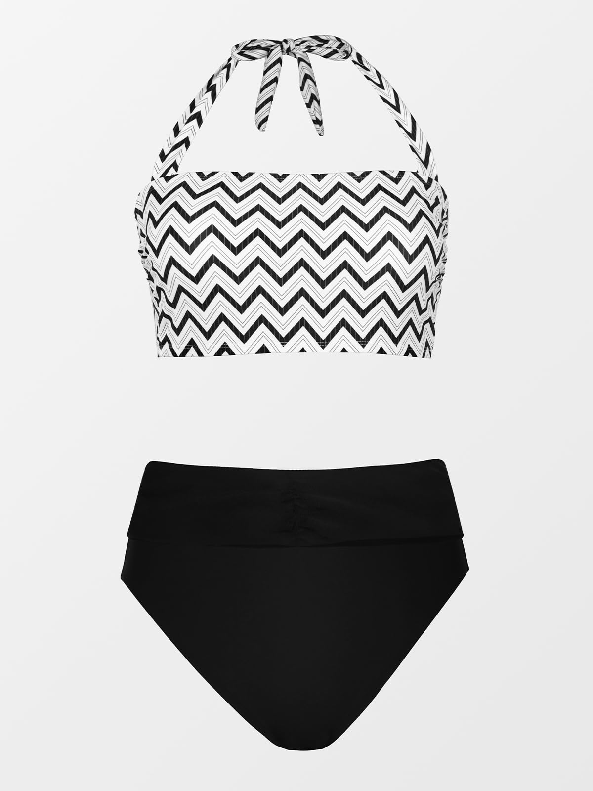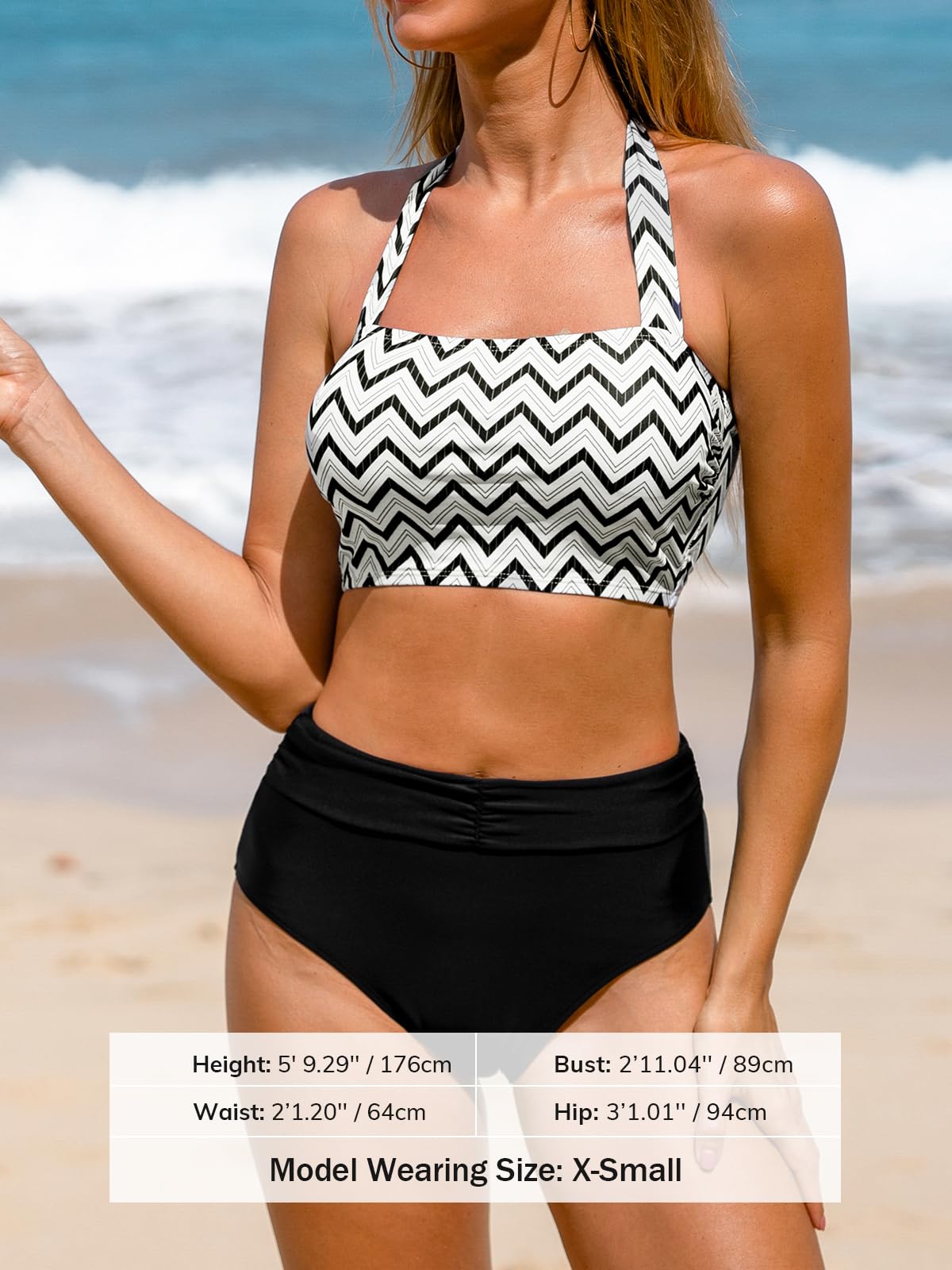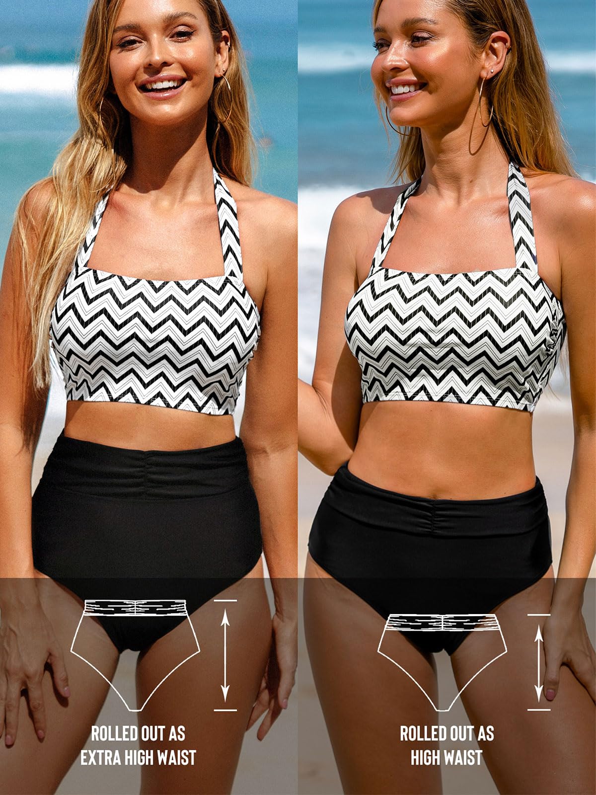 • Design: The Geometric Print Two Piece Swimsuit Features Halter Neck and Wrinkle Fabric. This Adjustable High Waisted Bottom with Power Mesh is for More Tummy Control. Self Tie Design provides more comfort.