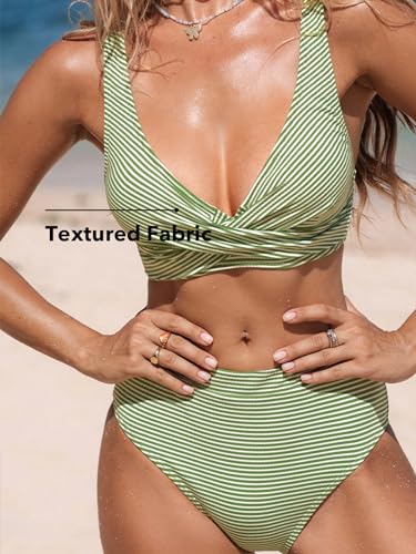CUPSHE Women's Bikini Sets Two Piece Bathing Suit High Waisted Plunging V Neck Front Twist Wrap Wide Adjustable Straps, L