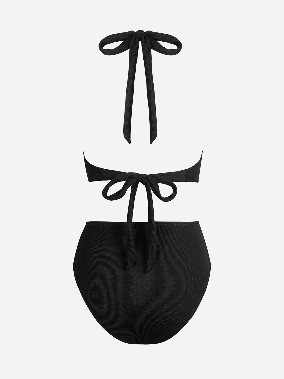 CUPSHE Women's Bikini Sets Two Piece Swimsuit High Waisted Halter Back Self Tie V Neck Backless,M Black