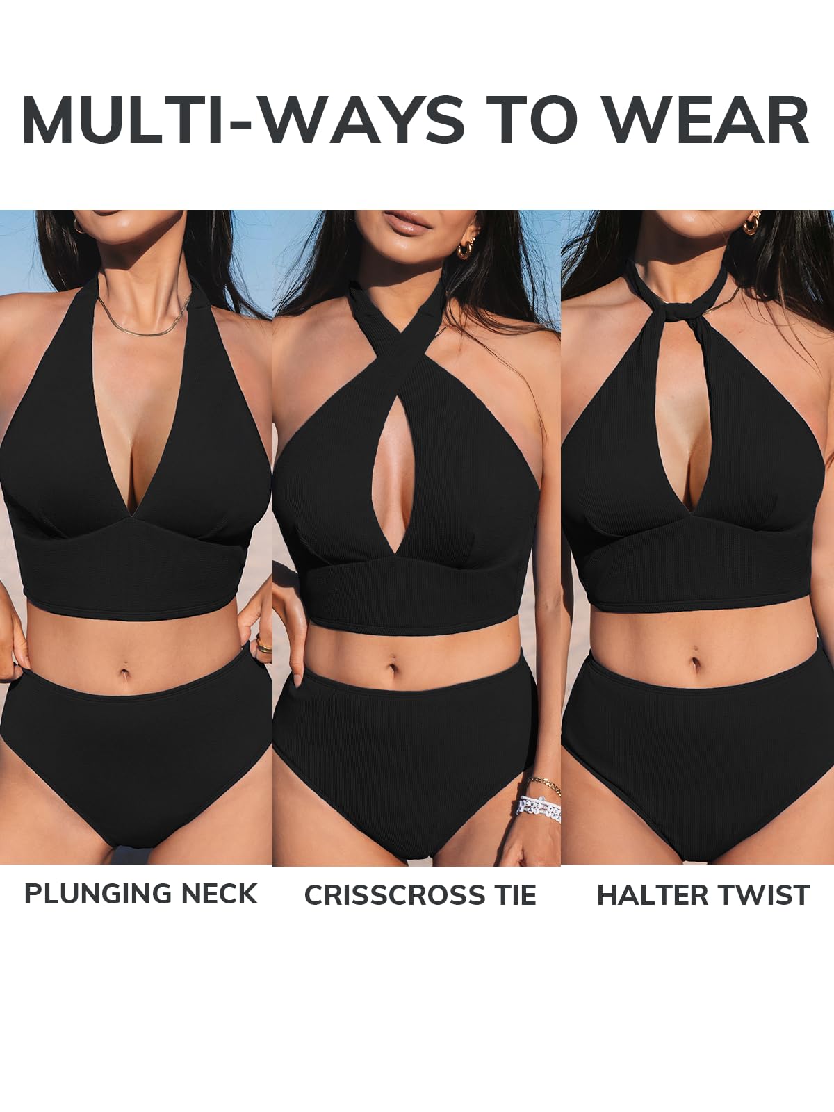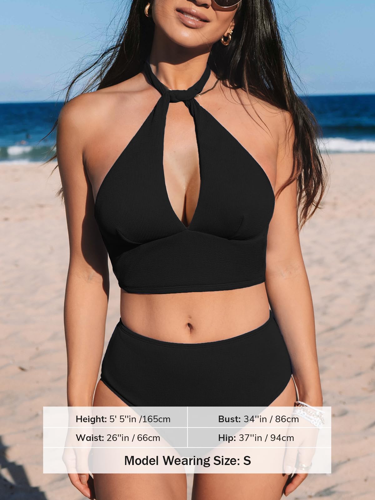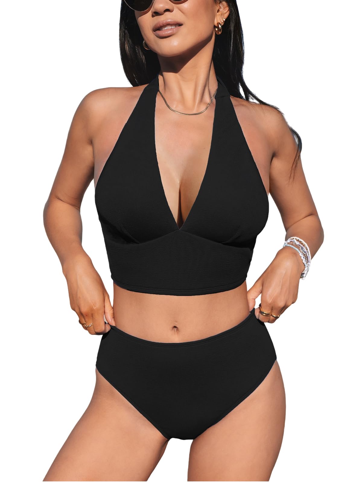 • Design: This Halter Bikini Sets Features Back Self Tie Design Can Provide Multi Ways to Tie Make You Flattering. TheV Neck Two Piece Swimsuit Design with High Waisted Bottom Can Catch Everyone' Eyes on the beach.