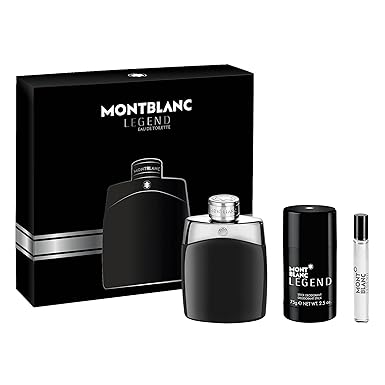 MONTBLANC Legend Eau de Toilette 3 Piece Set - 3.3 fl. oz. & 0.25 fl. oz. Spray, 2.5 oz. Deodorant Stick - Long Lasting Fragrance with notes of Bergamot, Jasmine & Sandalwood - Fresh & Fougere