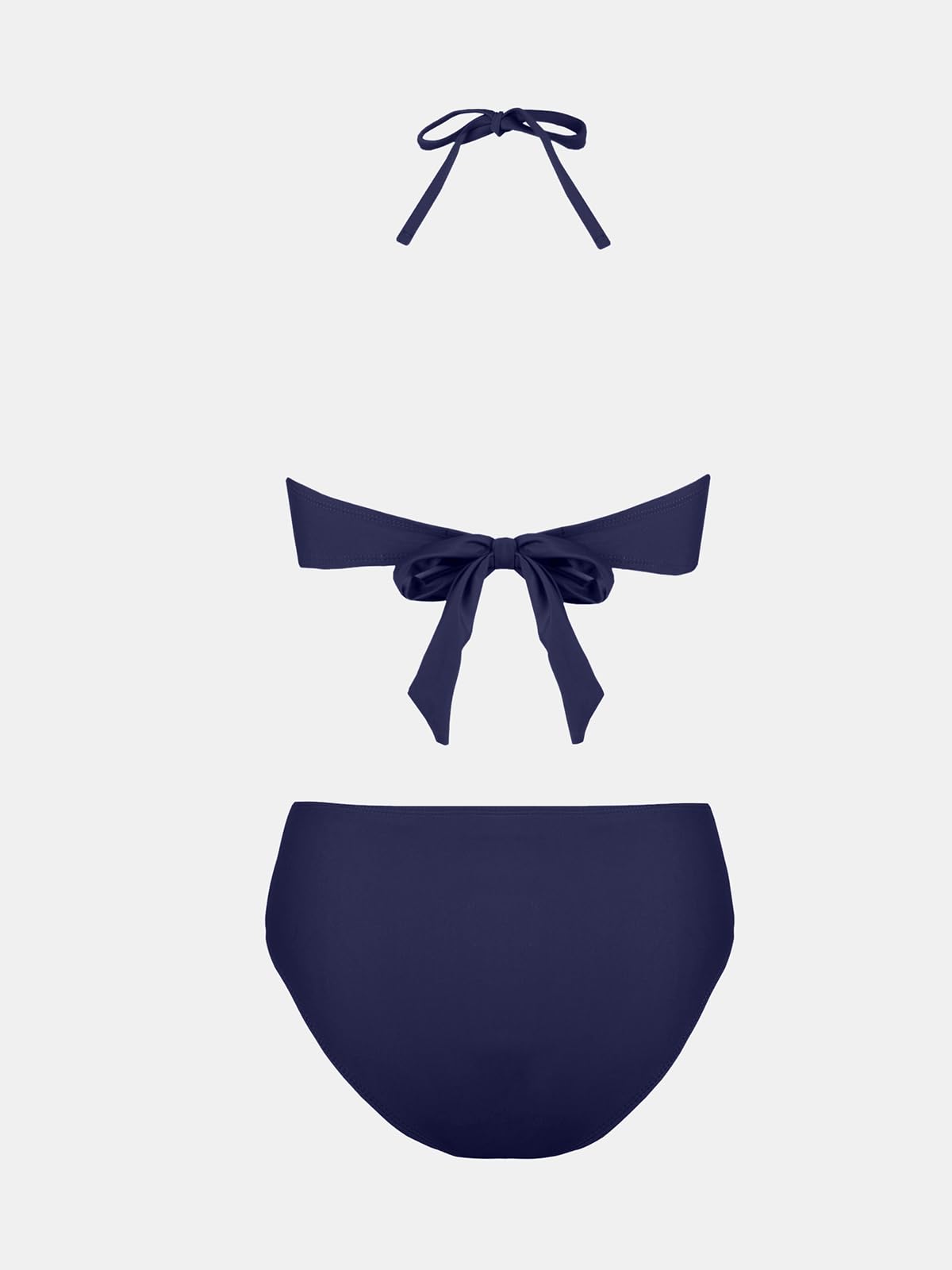 CUPSHE Women's Bikini Set Two Piece Swimsuit Bandeau Top Back Tie Mid Waisted Bottom with Removable Shoulder Straps M, Dark Blue