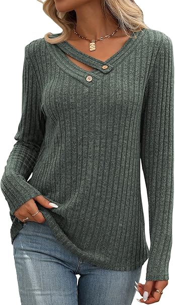 Misyula Style Long Sleeve Shirts for Women V Neck Fall Sweaters Dressy Casual Basic Tops 2024 Trendy Pullover S-2XL