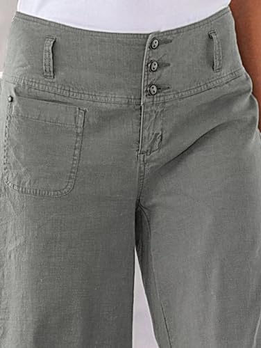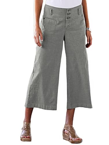 Flamingals Women's Wide Leg Crop Jeans Solid Button Up Low Waist Casual Pants Dark Grey M