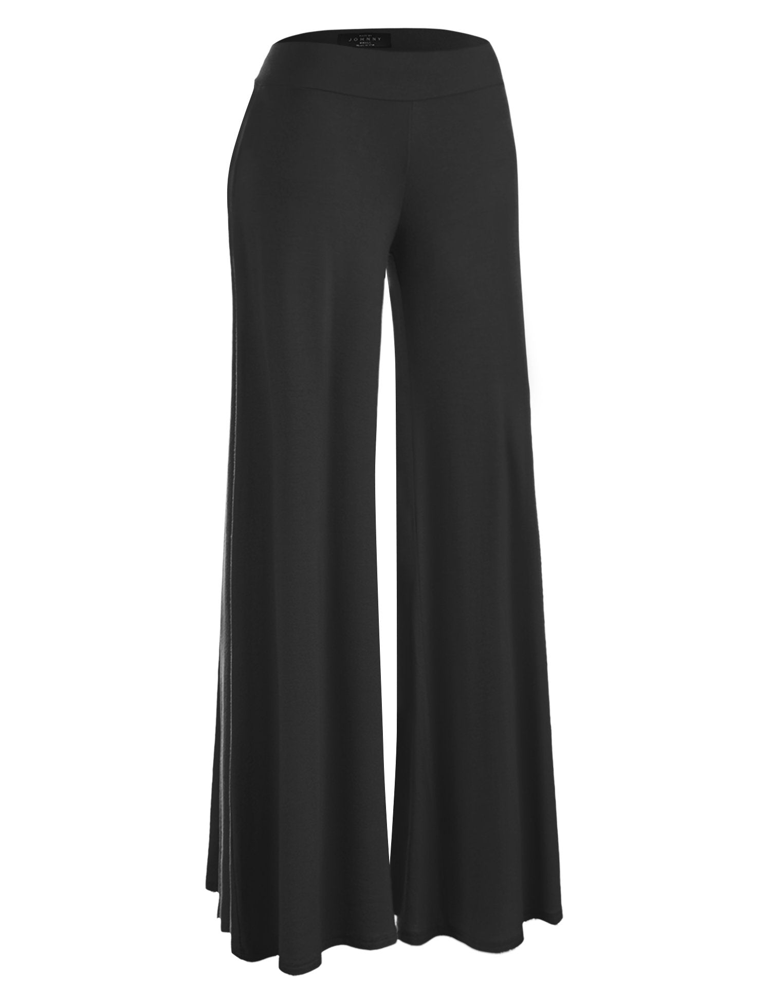 Made By Johnny MBJ WB1104 Womens Wide Leg Palazzo Lounge Pants L Black