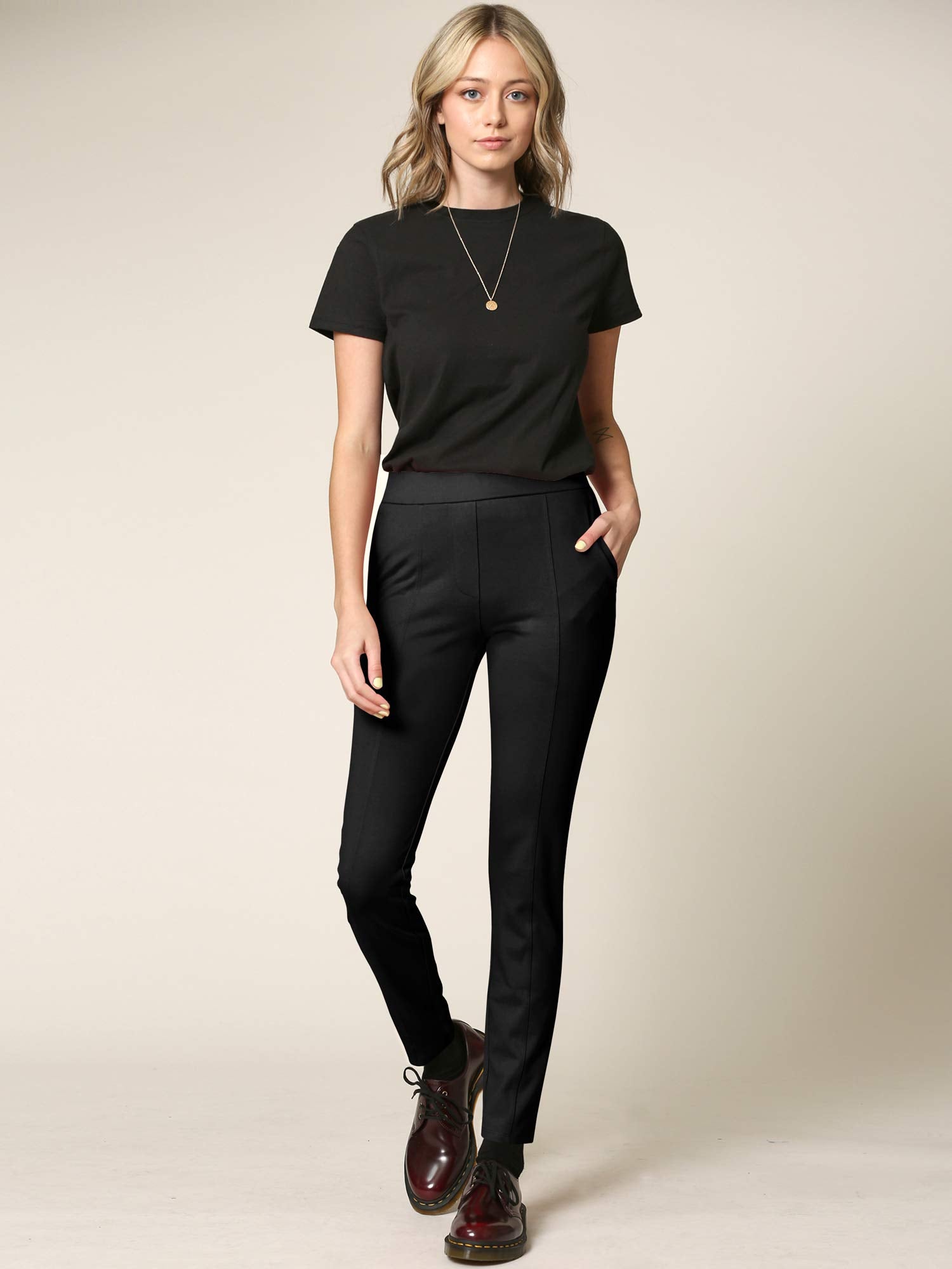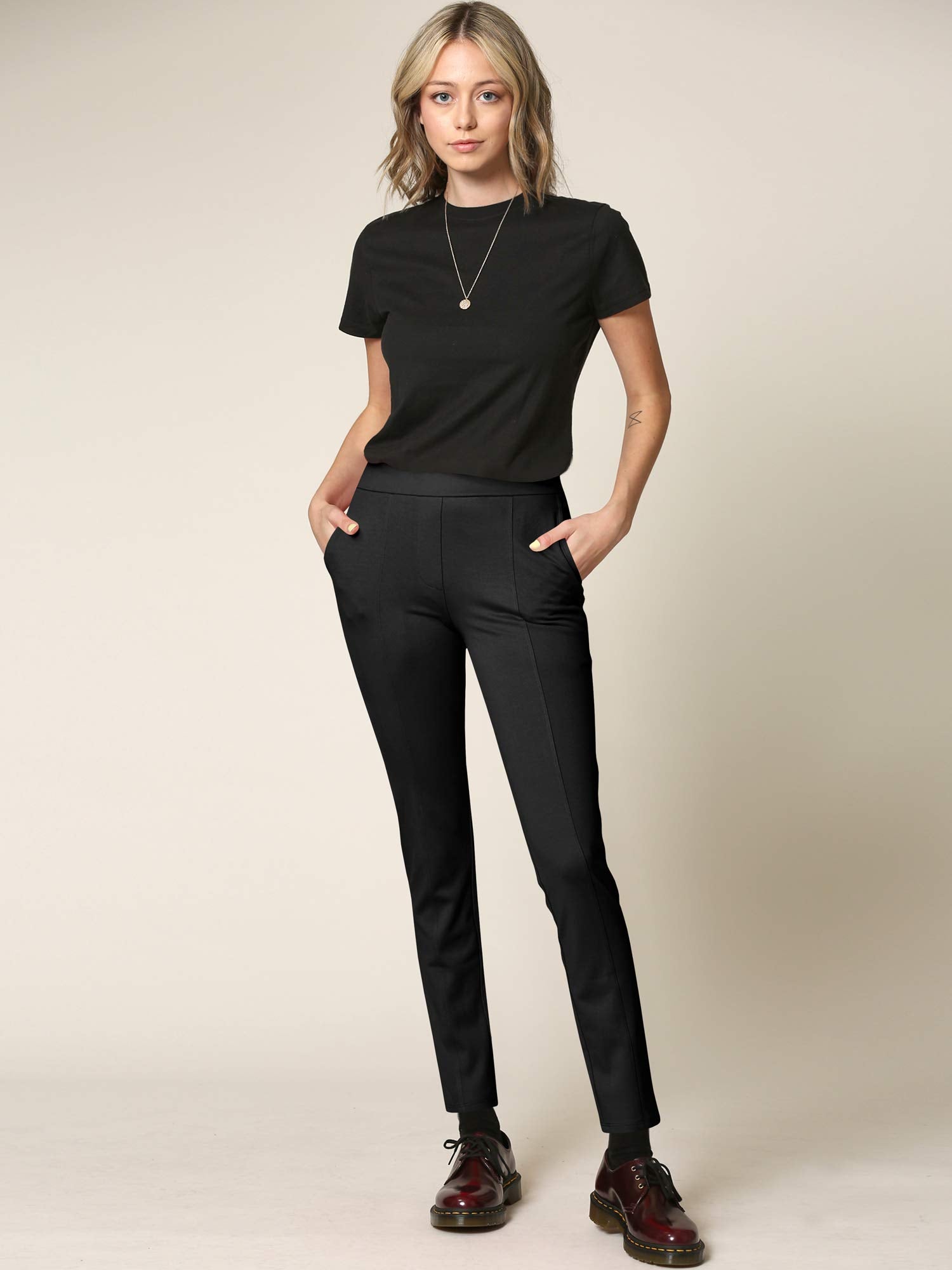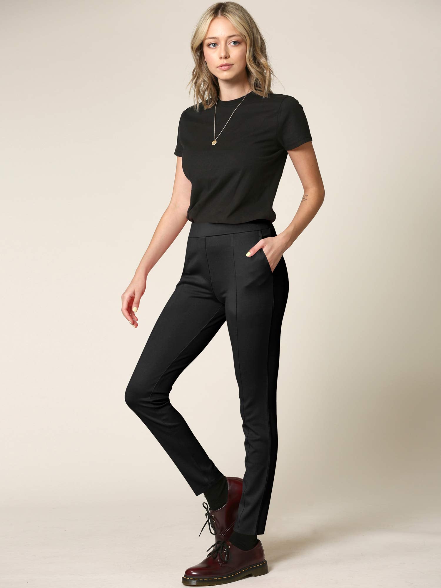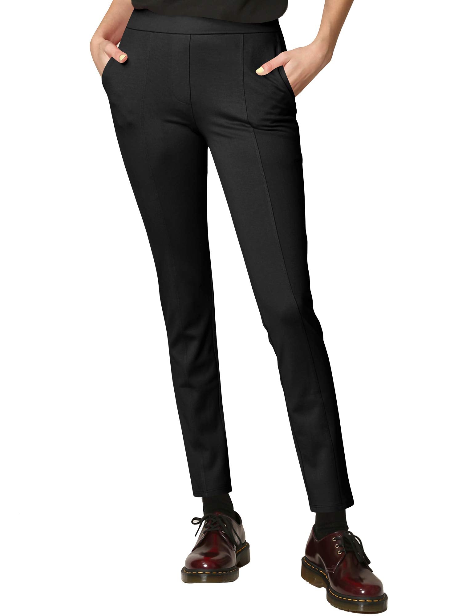 Made By Johnny MBJ WB2334 Women's Casual Leggings Stretchy Work Ankle Pants Office Slacks with Pocket L Black