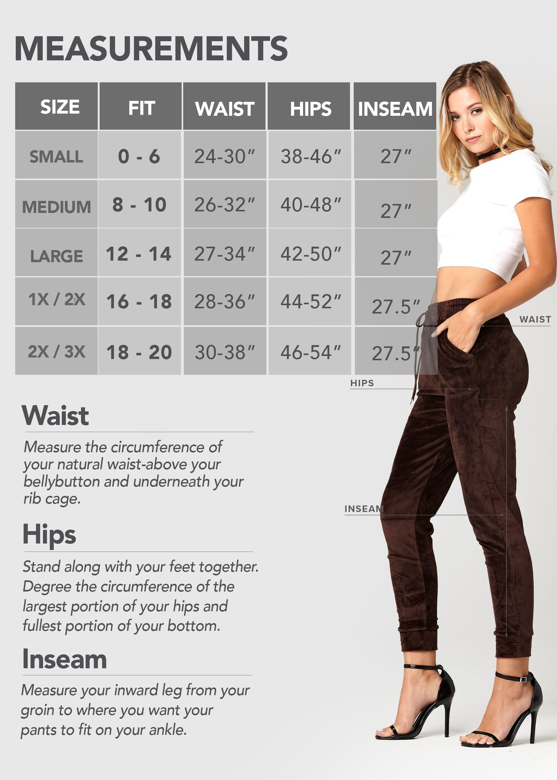 • Precision in Fit: Whether you're selecting velvet joggers or our signature velvet leggings, our distinct sizes ensure a perfect fit. Consult our detailed size chart for guidance, ensuring you find your ideal pair of womens velvet pants.
