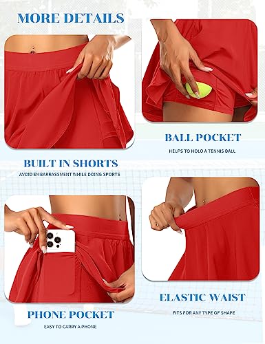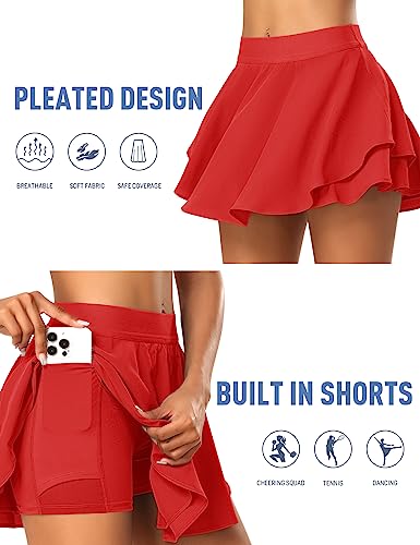 Pleated Tennis Skirt for Women with Shorts Golf Skort High Waisted Workout Athletic Running Skorts Skirts with Pockets (Red,Medium)