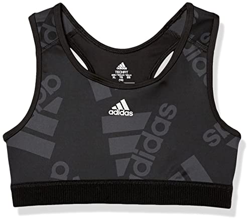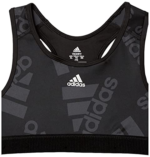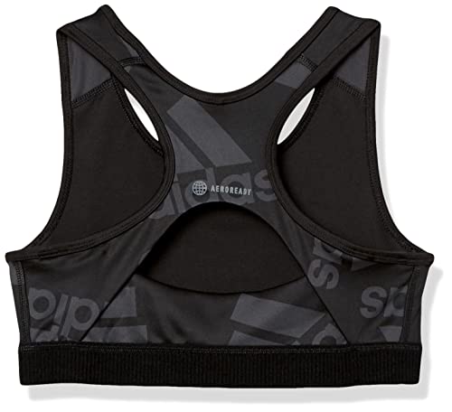adidas Girls' AEROREADY Allover Print Techfit Bra, Dark Grey, Large (14)