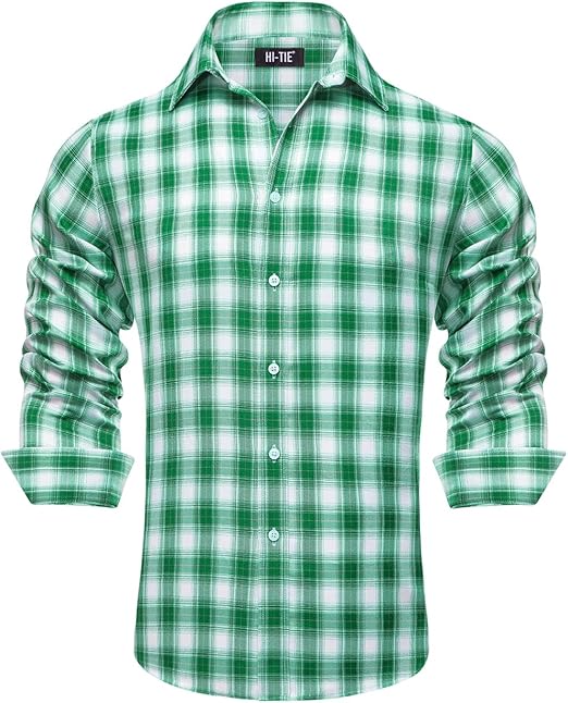 Hi-Tie Mens Plaid Long Sleeve Dress Shirts Casual Button Down Shirts Regular Fit Gingham Shirts