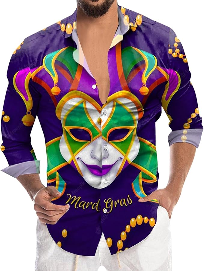 Mens Carnival Fashion Digital 3D Printed Long Sleeve Lapel Button Down Shirt Top Mens Long Sleeve Shirt Bulk